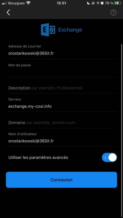 - Nom d'utilisateur : Rentrer son adresse mail complète.