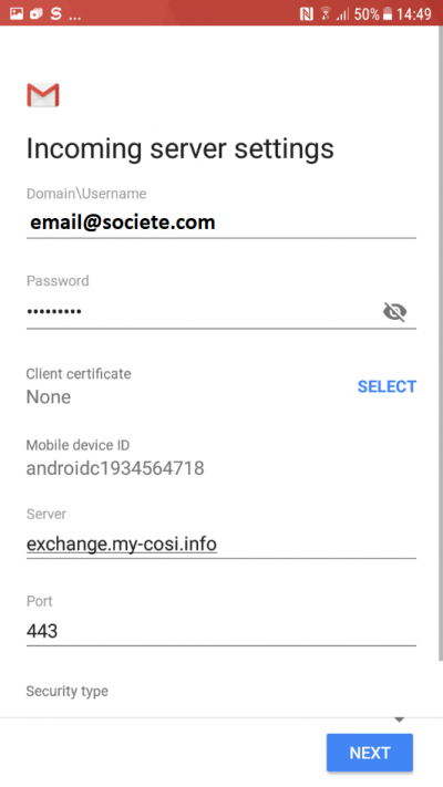 Sur smartphone, il faut créer un compte de type EXCHANGE ou encore ActiveSync pour pouvoir tirer pleinement partie de votre service EXCHANGE.
