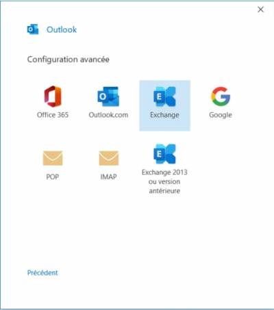 Configuration du client Outlook 2019 pour votre service EXCHANGE en mode automatique